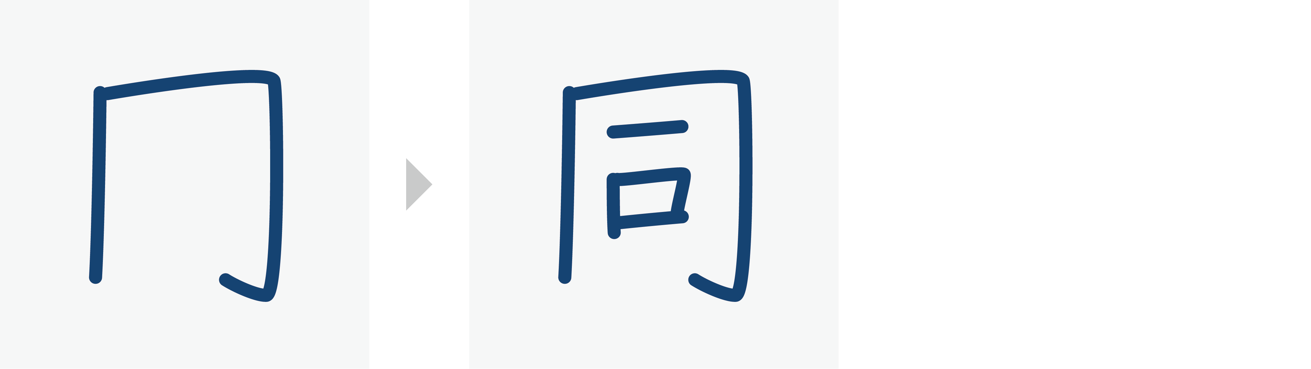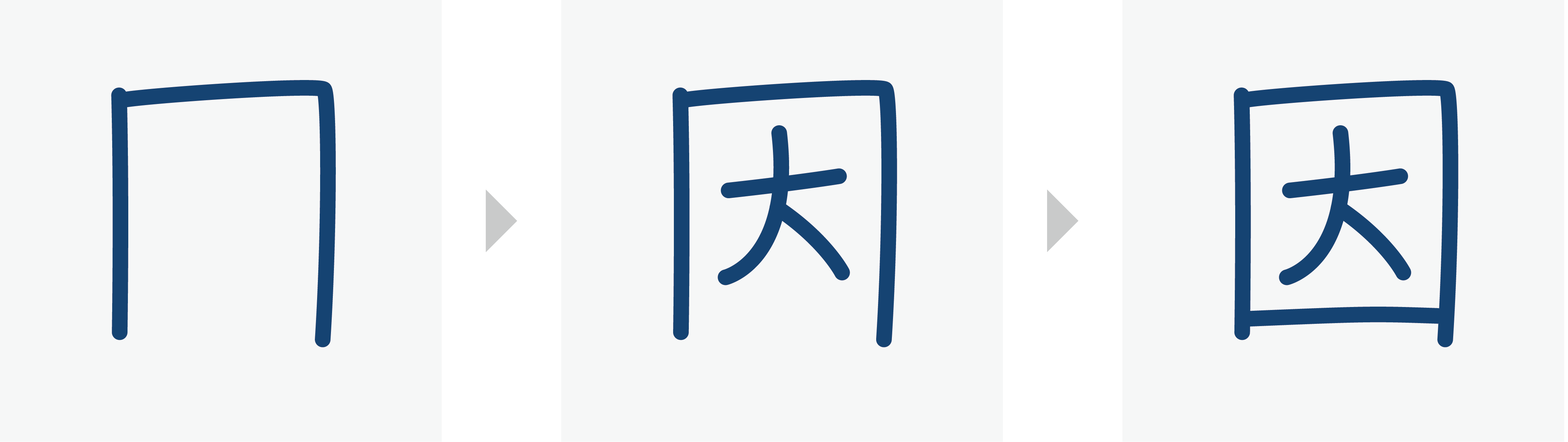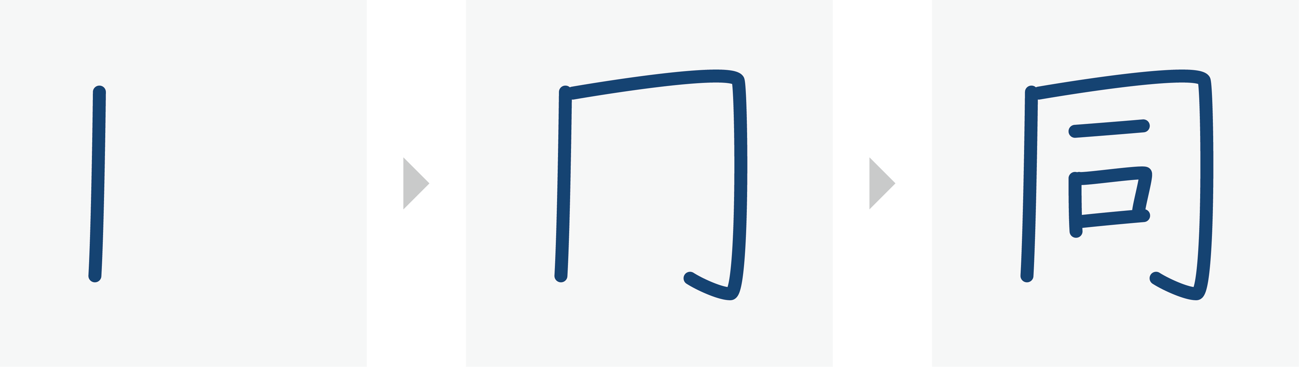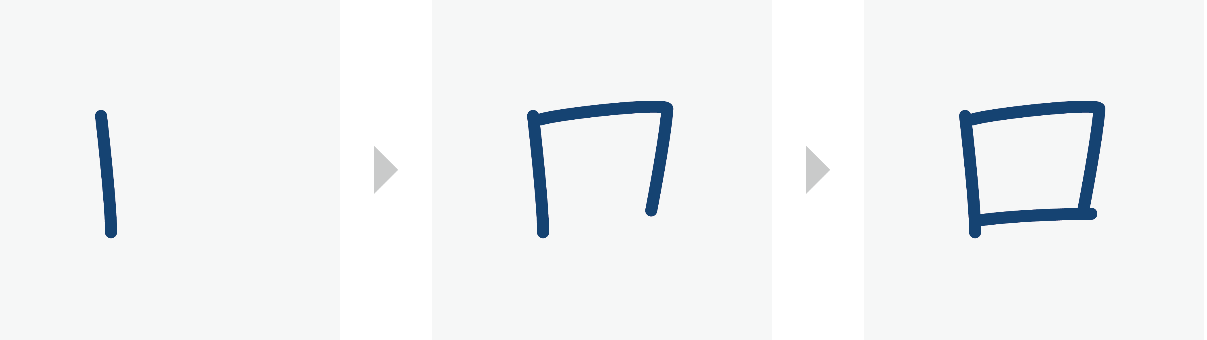 When a vertical stroke (丨) and a bend (乛) are put together to form a shape like ┌┐ or 口, write the vertical stroke (丨) before the bend (乛).