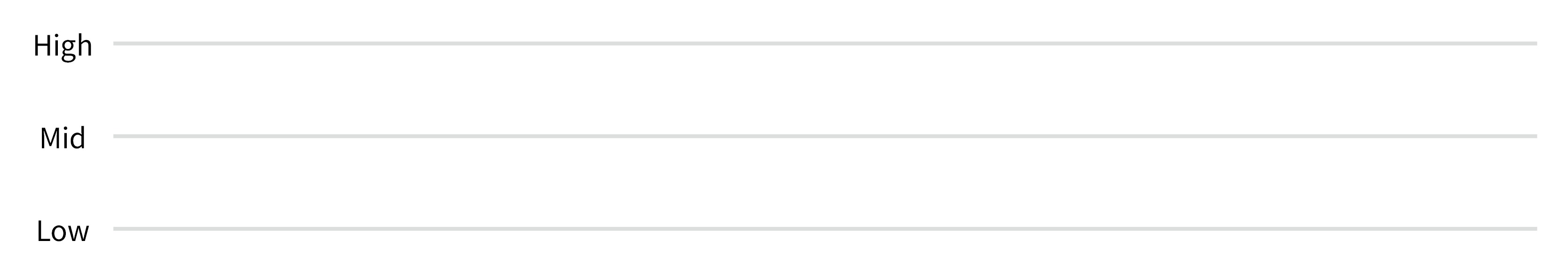 We can represent tones visually like the staff in music. The top, middle and bottom gray lines below represent the high, middle and low pitches respectively.