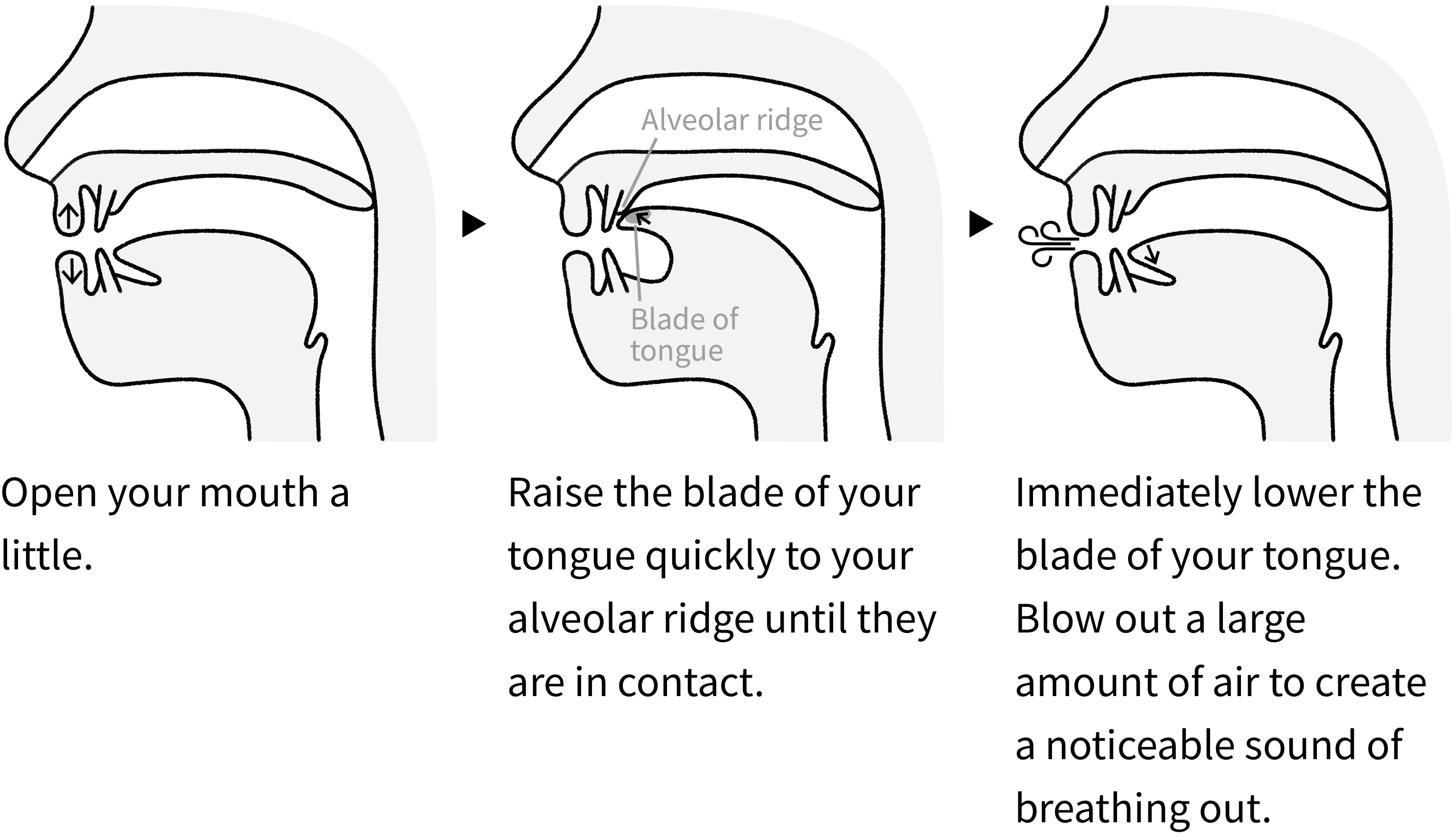Blade of tongue: The flat part just behind your tongue tip