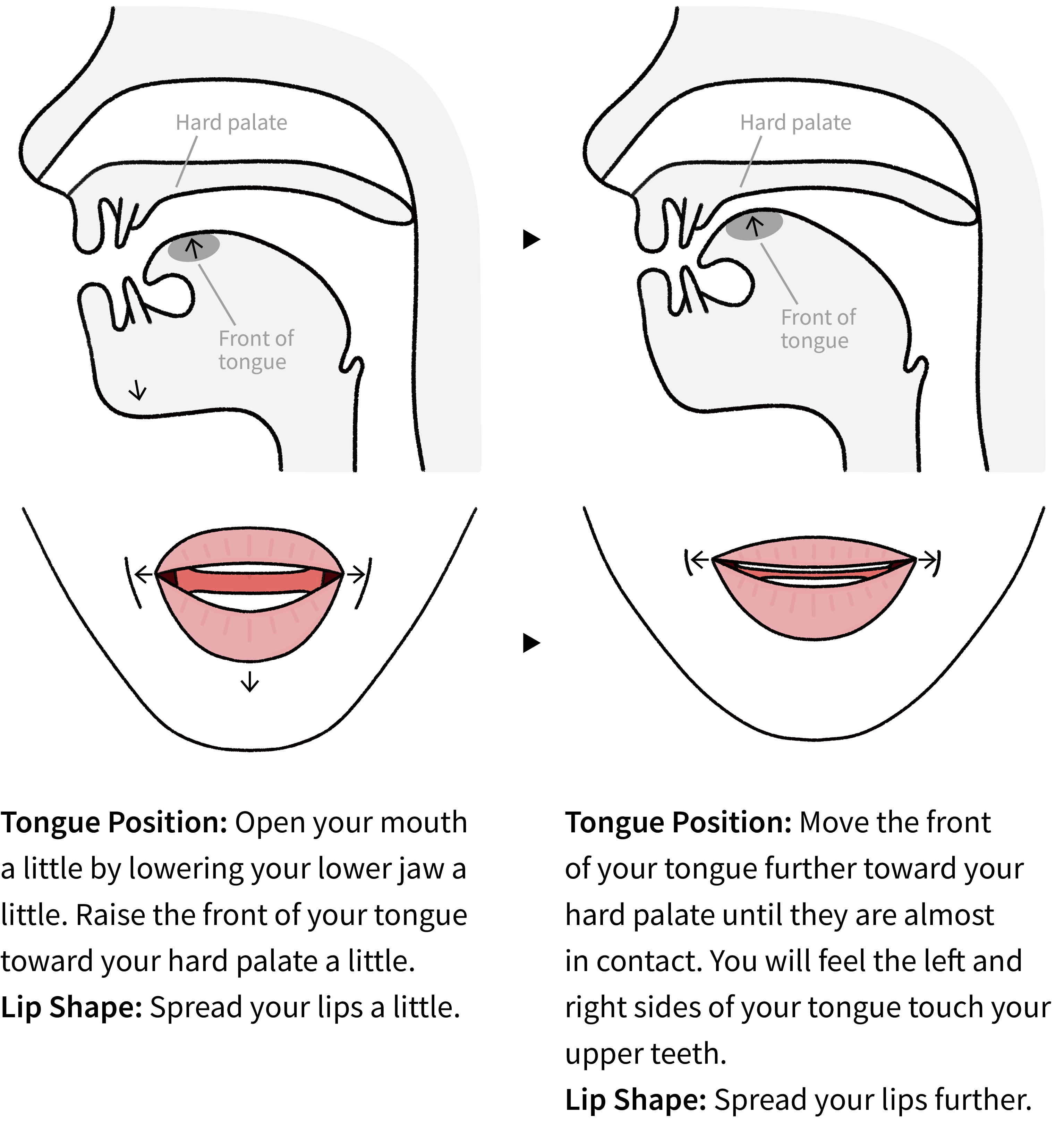 Step 2 Listen and repeat. Pay attention to your mouth shape. Use a mirror to check it if needed.