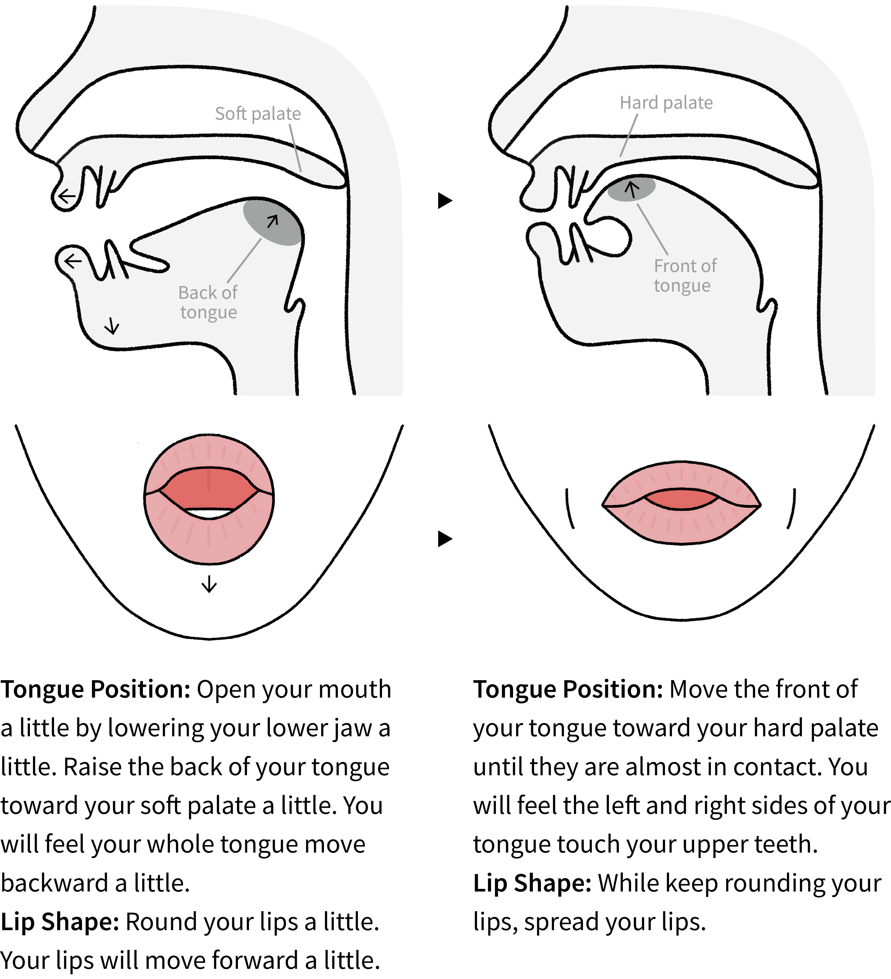 Step 2 Listen and repeat. Pay attention to your mouth shape. Use a mirror to check it if needed.