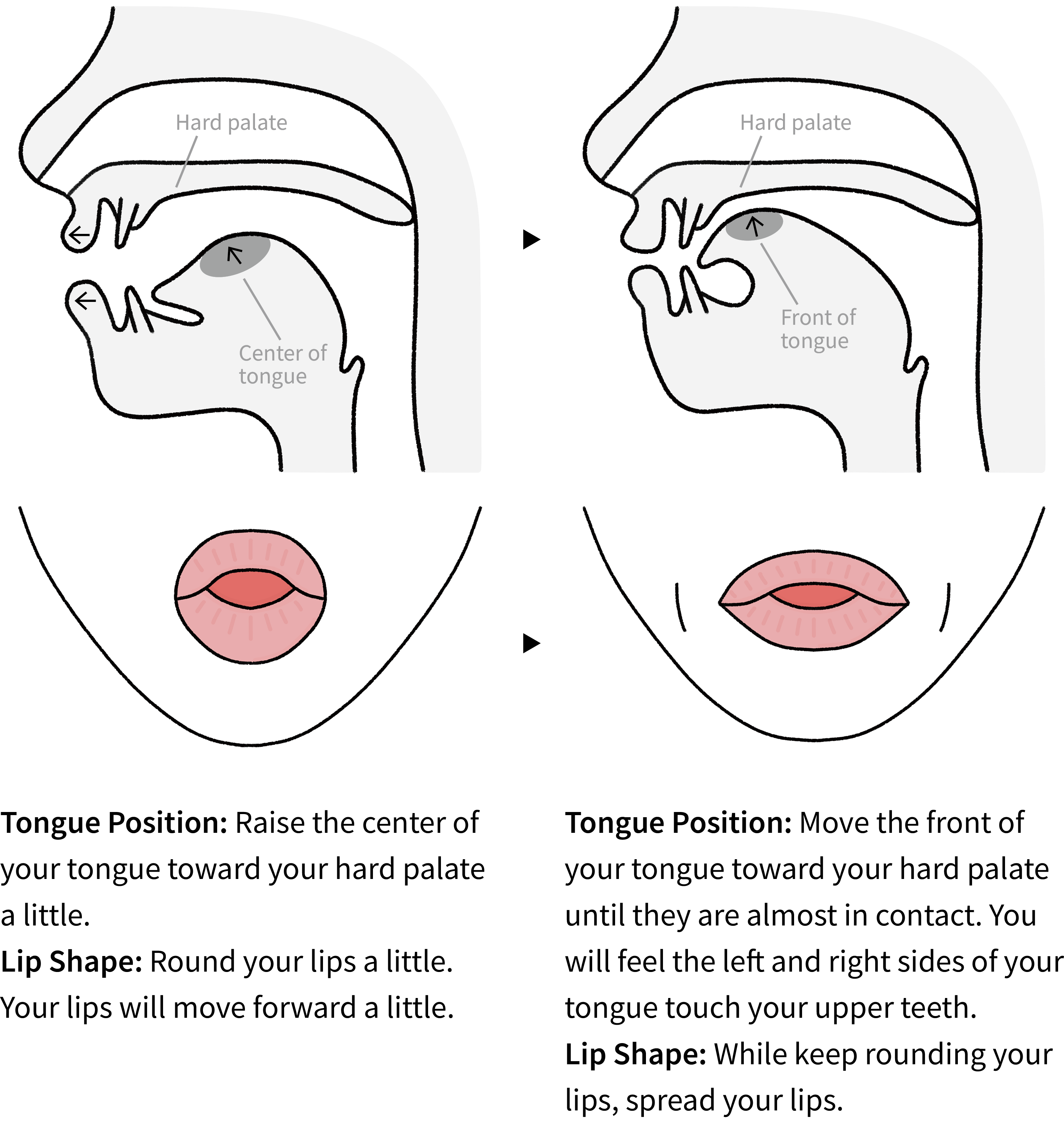 Step 2 Listen and repeat. Pay attention to your mouth shape. Use a mirror to check it if needed.