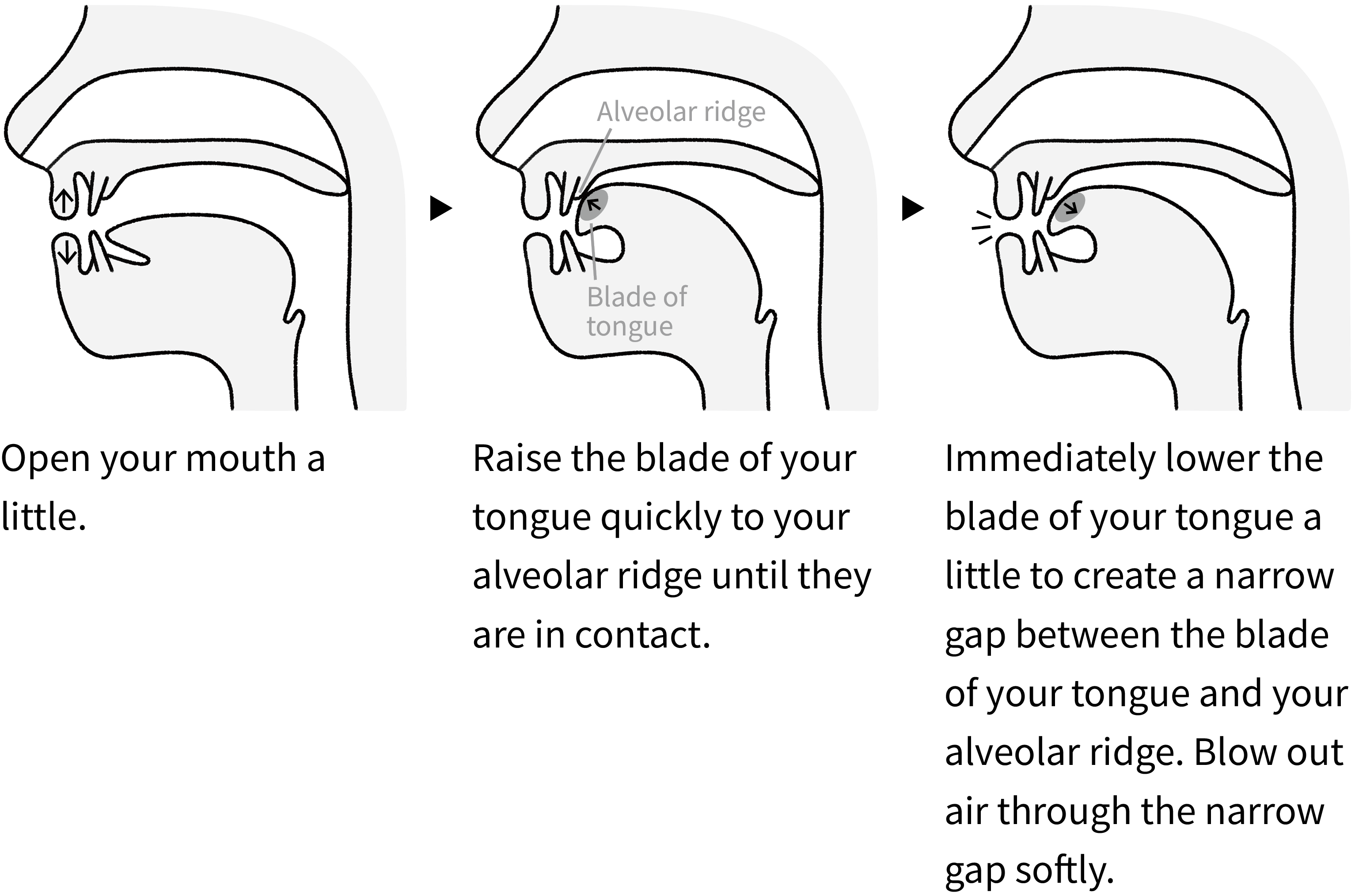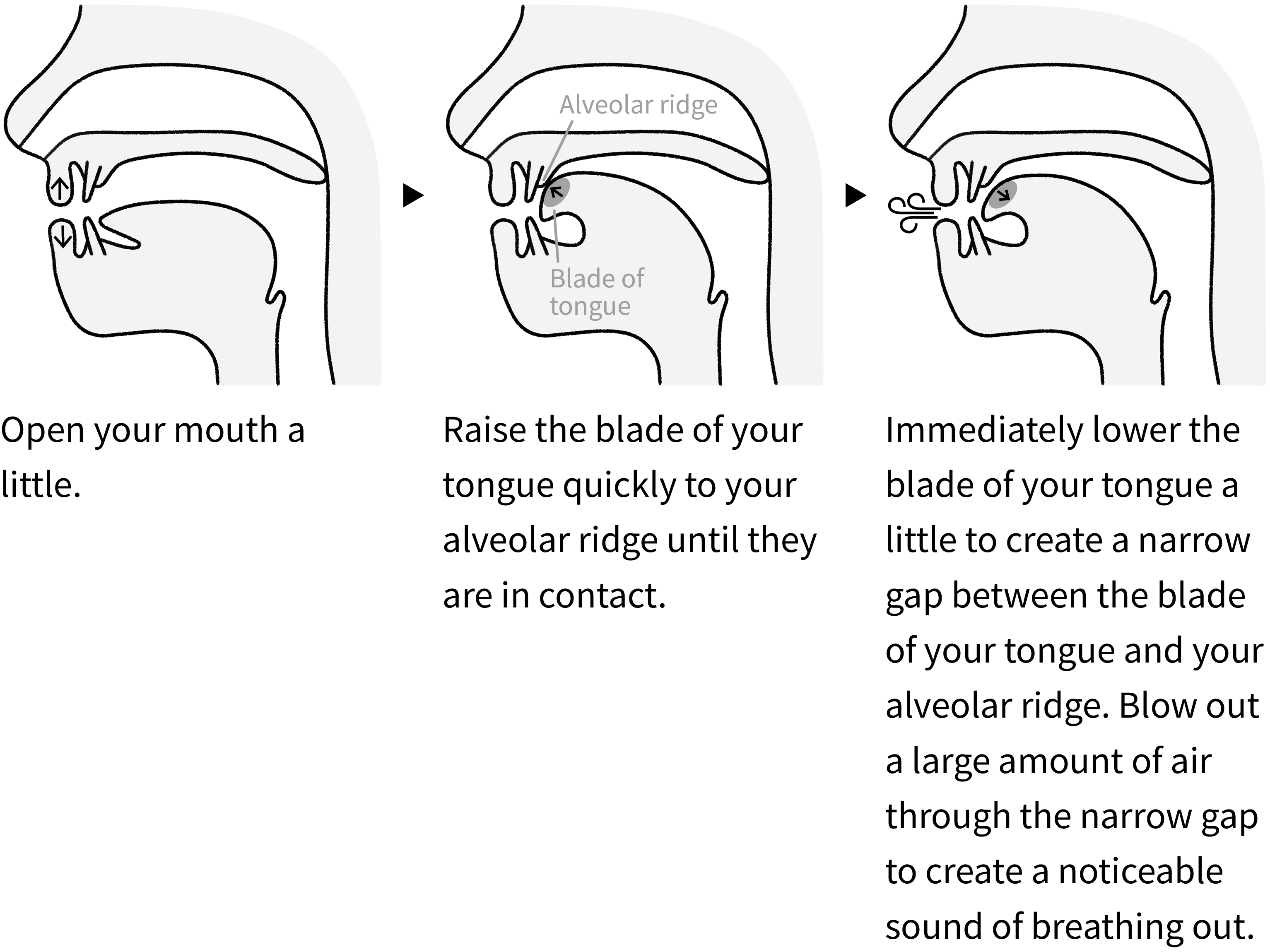 Blade of tongue: The flat part just behind your tongue tip
