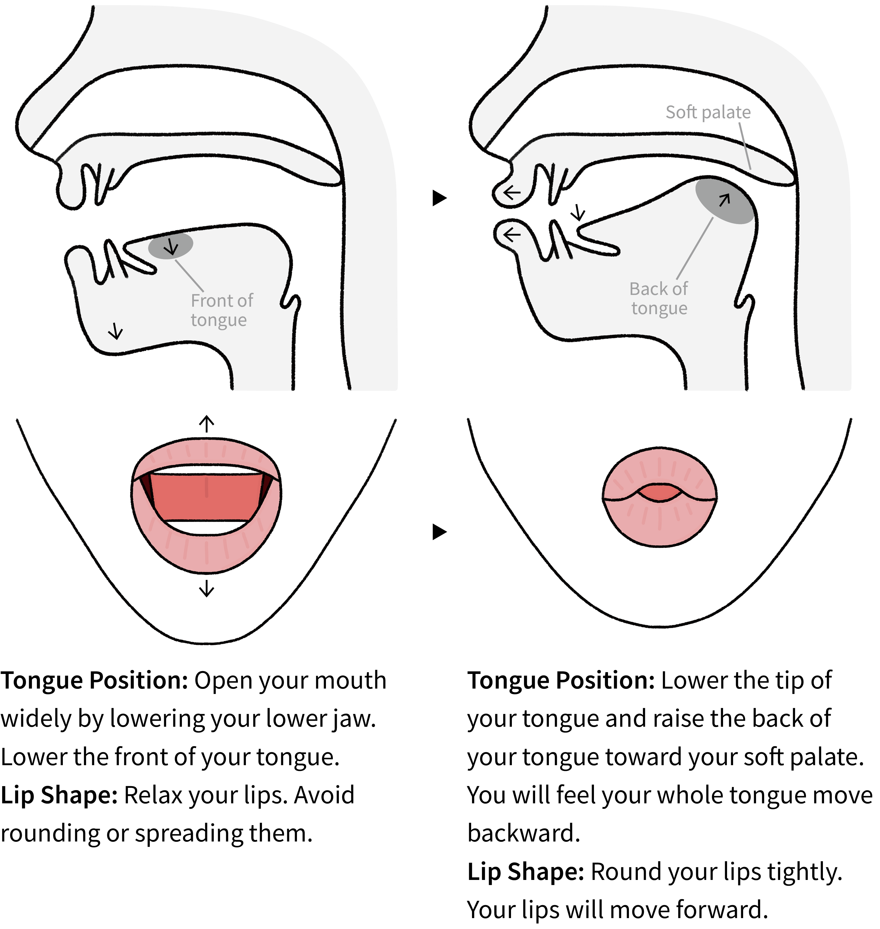 Step 2 Listen and repeat. Pay attention to your mouth shape. Use a mirror to check it if needed.