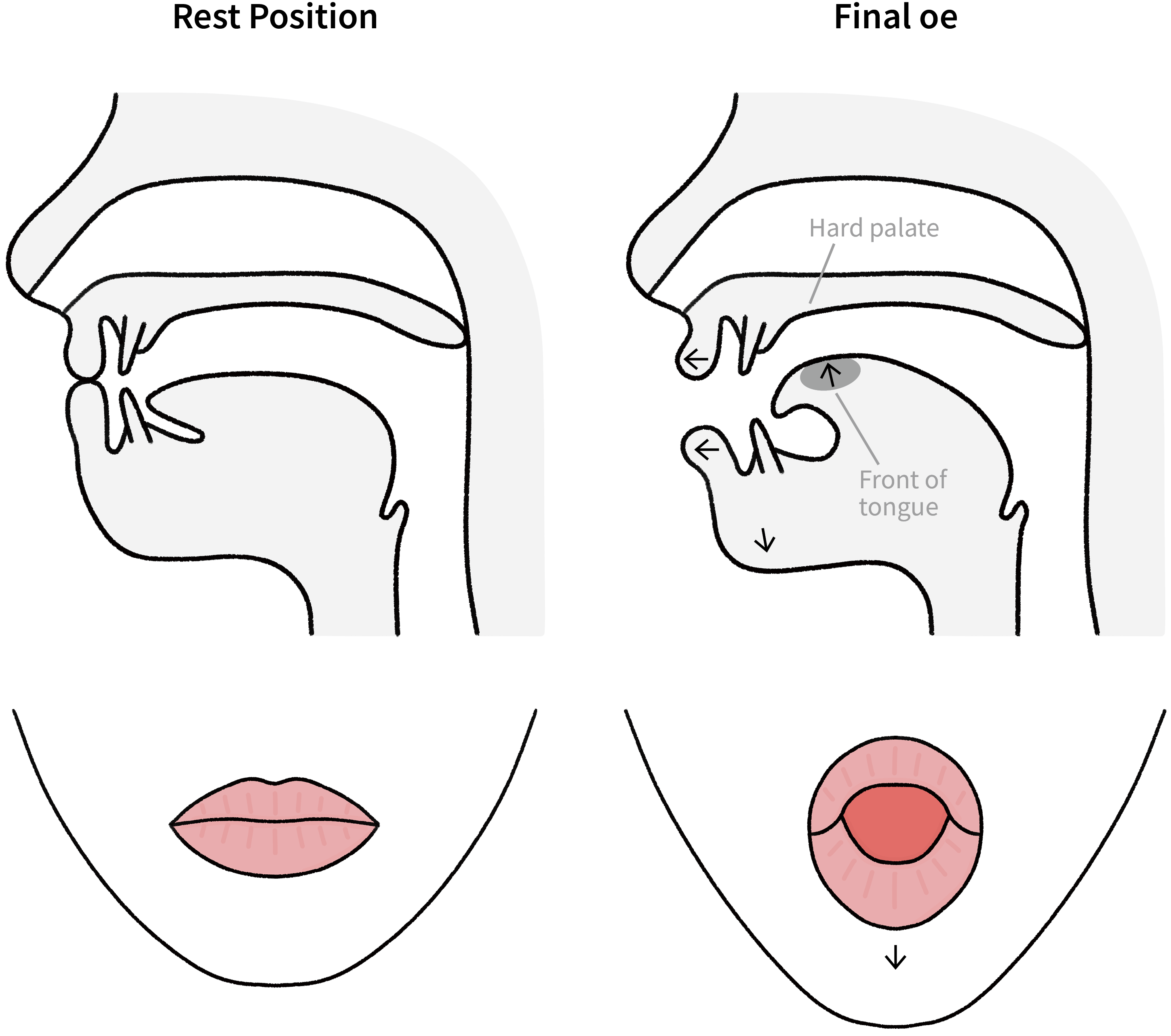 The final oe is formed by the vowel oe alone. Note that the vowel oe is not formed by combining the vowel o and the vowel e. It is a sound different from both of them. Also, don’t confuse the vowel oe with the vowel eo.